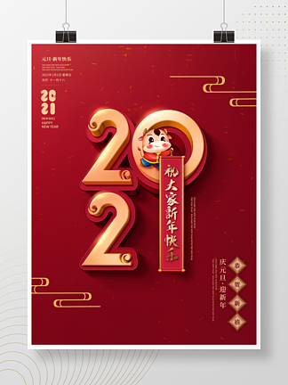 - 简约中国风2021牛年字体新年创意海报 2021-01-01