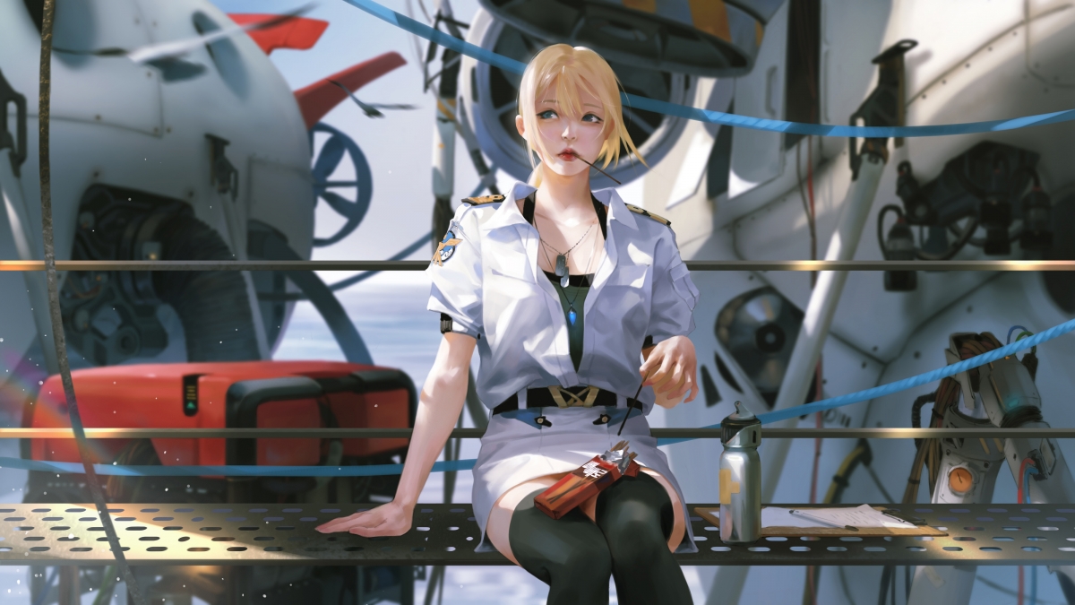 女子 白色军装制服 黑色丝袜 海边 4k动漫壁纸